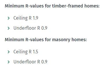 If a rental property already has ceiling and underfloor insulation that was installed prior to July 2016, the owner may not have to do anything, trusting this existing insulation is free of gaps, dampness or mould, and meets the minimum R-values listed below: